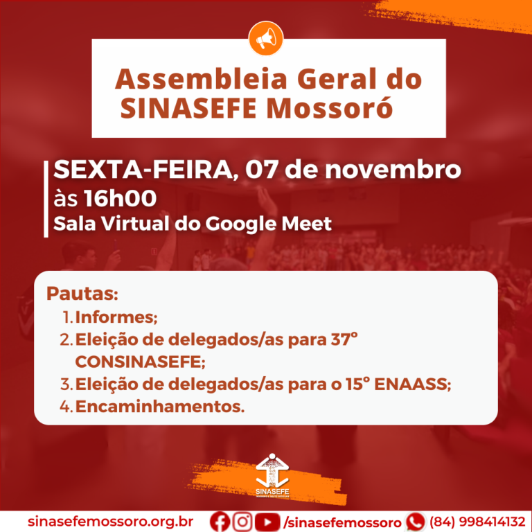 O IFRN VAI PARAR!  O SINASEFE Seção Mossoró, em Assembleia Geral do SINASEFE Mossoró realizada dia 22 de outubro, deliberou a adesão à Paralisação Nacional